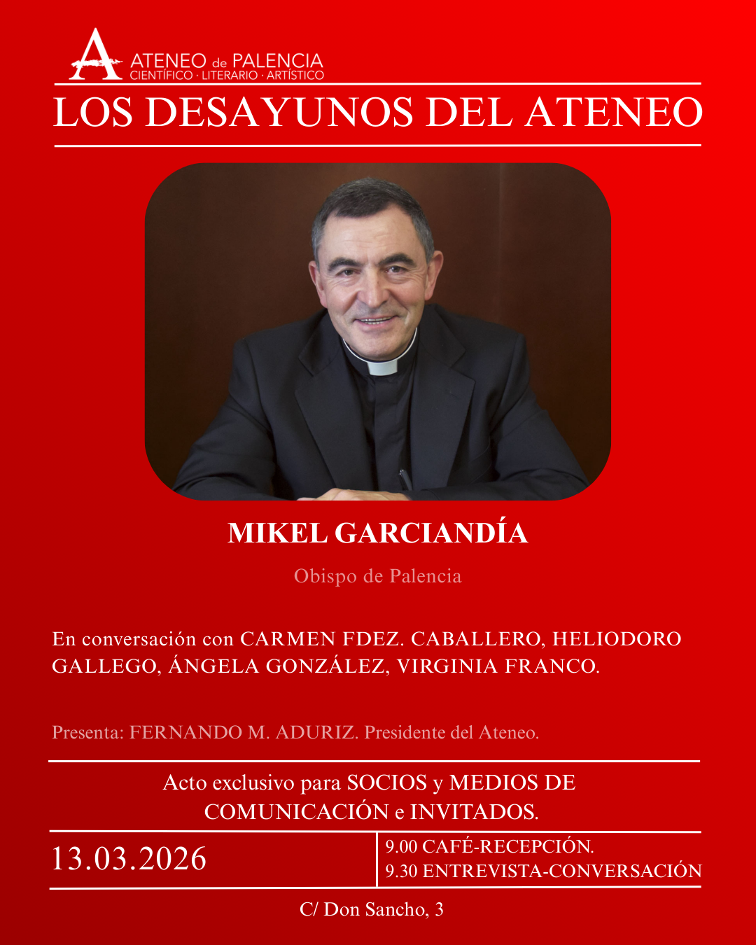 LOS DESAYUNOS DEL ATENEO – Mikel Garciandía LOS DESAYUNOS DEL ATENEO – Mikel Garciandía + Añadir Google Calendar Exportación + iCal / Outlook 00 días 00 horas 00 minutos 00 segundos Fecha Mar 13 2026 Hora 09:00 Localización Nueva Sede Ateneo de Palencia Calle Don Sancho, 3 Categoría Marzo 2026 Compartir este evento