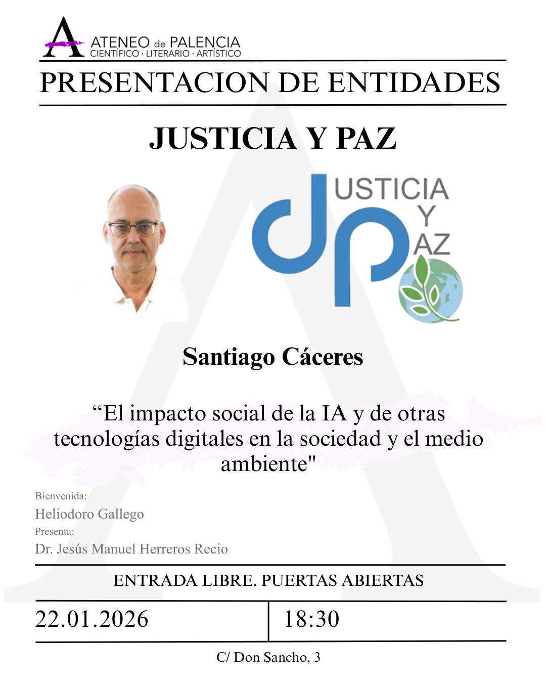 PRESENTACIÓN DE ENTIDADES – JUSTICIA Y PAZ – Santiago Cáceres – «El impacto social de la IA y de otras tecnologías digitales en la sociedad y el medio ambiente»