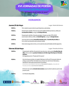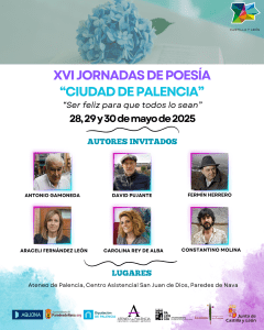 XVI Jornadas de Poesía – Ciudad de Palencia + Añadir Google Calendar Exportación + iCal / Outlook Fecha May 29 – 30 2025 Finalizdo! Hora 08:00 Categoría Mayo 2025 Compartir este evento